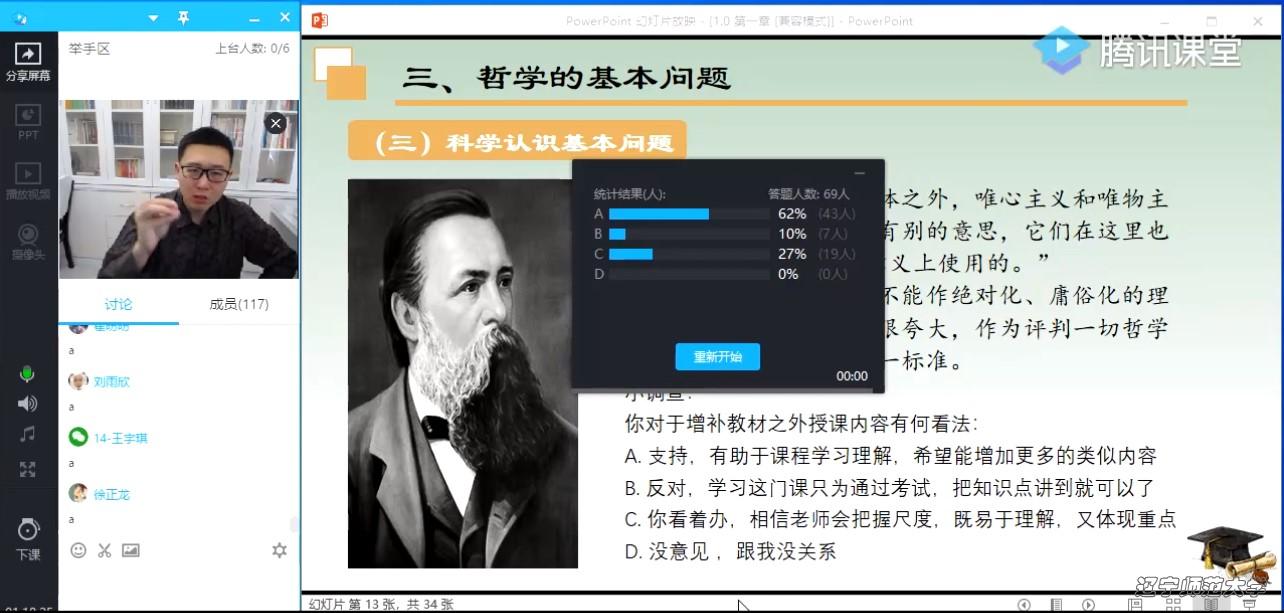 为贯彻落实教育部和教育厅应对新型冠状病毒感染肺炎疫情的系列文件精神,遵循“停课不停教,停课不停学”的总体要求,根据辽宁省教育厅宣传部(思想政治工作处)以及辽宁师范大学教务处关于春季学期本科生教学在疫情防控期间延期开学开展线上教学的通知精神,充分发挥各单位基层教学组织的作用,汇聚一线教师的智慧与力量,分享在线教学经验与案例,助力教师教学能力的提升,切实保障我校教师在线教学质量,并进一步推动课程建设改革,助推我校在线教学经验交流与分享活动。我承担的马克思主义基本原理概论课程在线上教学期间的一些心得与体会,与大家分享。
