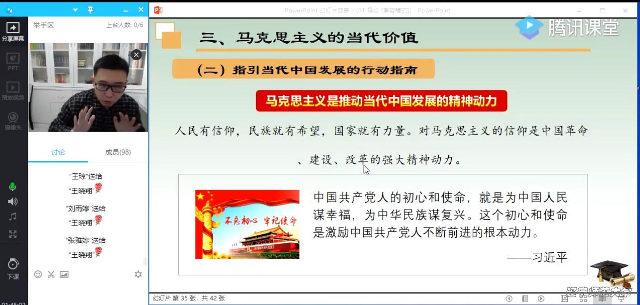 马克思主义学院兰明老师在线上讲授马克思主义基本原理概论课程