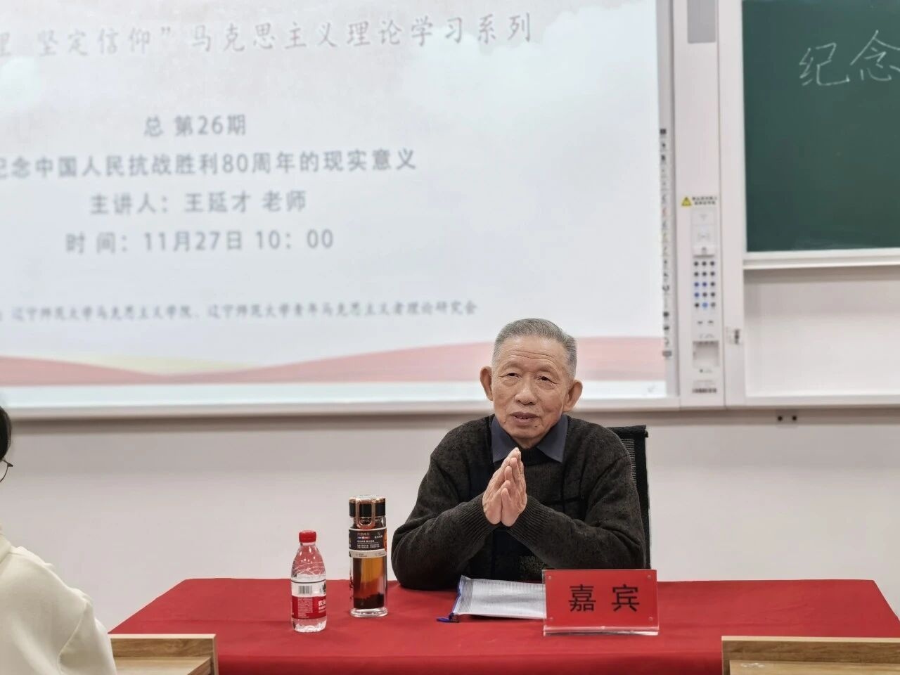 王延才老师以抗战胜利80周年的现实意义为核心脉络,从四大维度系统阐释近代中国的抗争与奋进之路。其一,铭记历史、警钟长鸣,他回溯从1840年鸦片战争国门洞开,到第二次鸦片战争圆明园被焚毁、沙皇俄国鲸吞150万平方公里国土,再到甲午海战失利、台湾沦为殖民统治的半世纪、庚子赔款奇耻及全面抗战时期3500万同胞喋血、南京大屠杀与731部队反人类暴行等沉痛史实,强调铭记历史不是延续仇恨,而是以史为鉴、警示未来。其二,缅怀先烈、坚守初心,他深切追忆杨靖宇、赵尚志、赵一曼等东北抗联先烈,描绘其在冰天雪地、绝境困厄中坚守抗战、宁死不屈的壮举,诠释共产党人的初心使命与信仰之光。其三,珍爱和平、传承传统,他指出中华民族具有爱好和平的特质,结合抗战胜利后人民对安居的期盼、抗美援朝战争赢得70余年和平发展机遇的历程,阐明和平的珍贵,强调新时代需以实力守护和平。其四,携手未来、共促统一,他阐明对美、对日的原则立场,坚定反对“台独”、捍卫领土完整,认为两岸统一是历史的必然,凝聚两岸同胞传承共同记忆、共推民族复兴的磅礴力量。