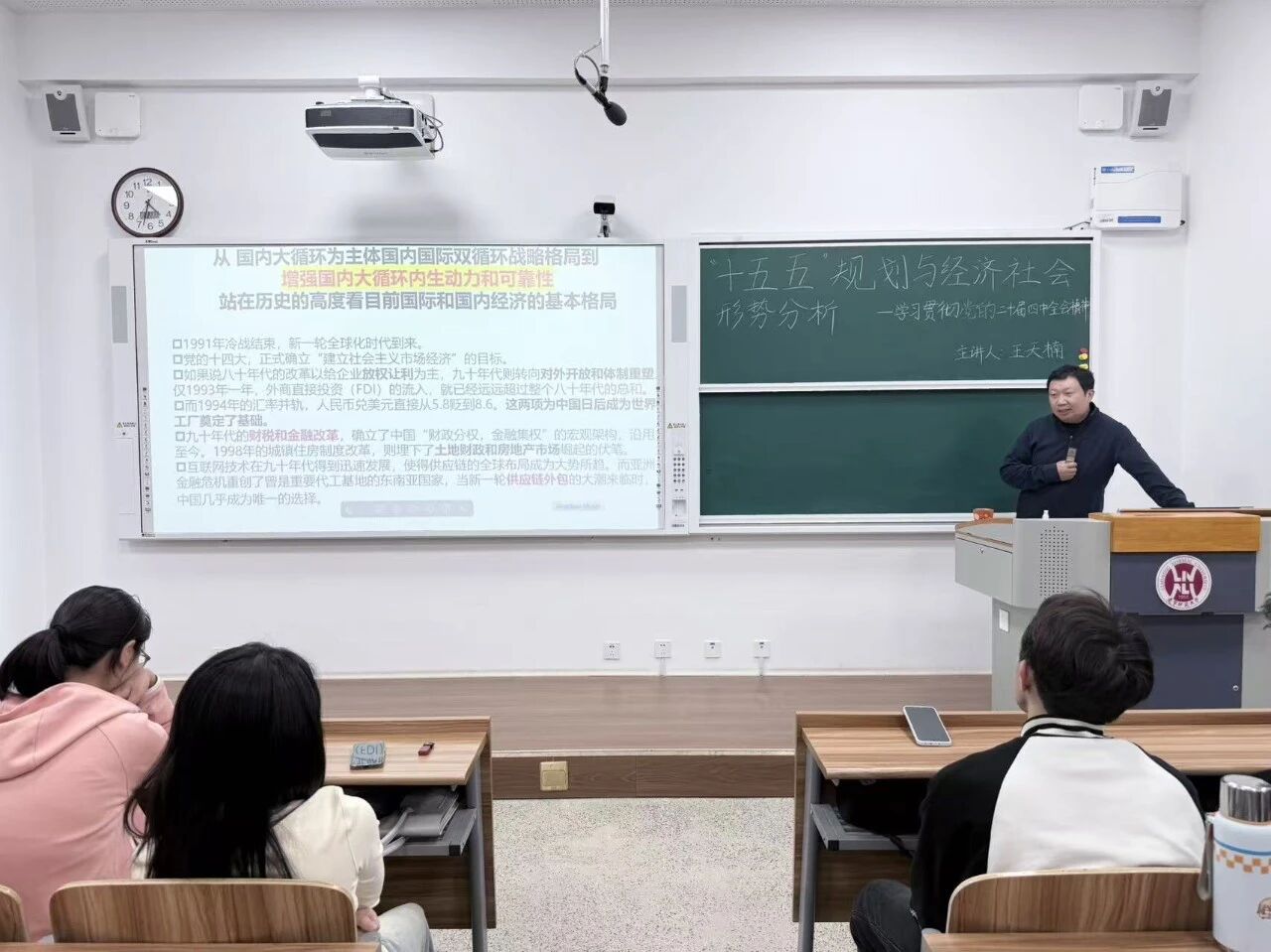 最后,王天楠老师系统讲述全会及“十五五”规划对各领域发展的重大战略部署,强调要以经济建设为中心,统筹发展与安全,推动各项政策落地见效,勉励大家精准把握时代发展方向,主动融入国家发展大局,切实把政策精神转化为行动自觉,为推动经济社会高质量发展贡献力量。