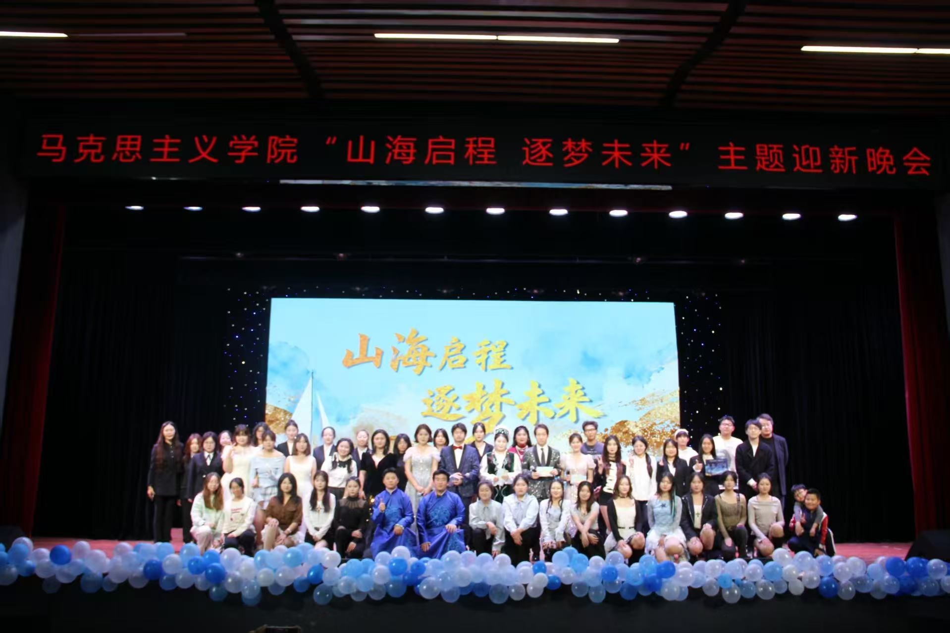 山海为序,心跳应和节拍;逐梦为章,起舞定格华年。2025年11月28日17时,马克思主义学院在西山剧场成功举办2025年“山海启程 逐梦未来”主题迎新晚会。出席本次迎新晚会的嘉宾有:马克思主义学院执行院长李玉珂、党委书记王吉东、党委副书记傅厚春、副院长王晓翔、团委书记曾环,以及田广澍老师、兰明老师、班晓娜老师。2025级全体研究生、本科生和其他年级部分学生参加。小红马们以歌抒怀、以舞传情、以诵明志,尽展青春风采,共赴逐梦新程。下面让我们一起回顾晚会的精彩瞬间吧!