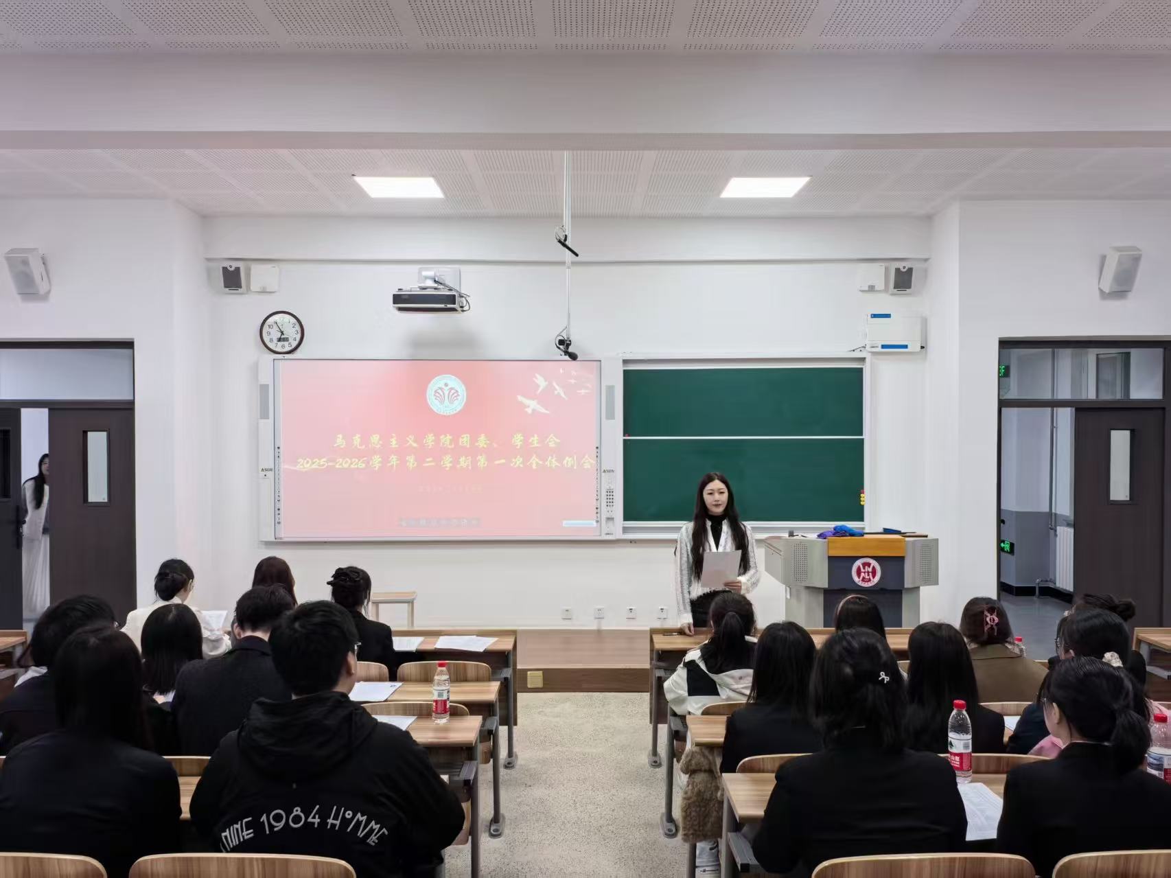 为确保学院团委、学生会各项工作的高效推进,我院第十一届团委、学生会2025-2026第二学期第一次全体例会于2026年3月13日19:00在实训楼313教室召开。出席本次会议的有团委书记曾环和团委、学生会各部门负责人,本次会议由曾环老师主持。