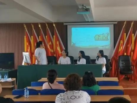 接下来的几天里,团队成员在当地街道工作人员协助下,于沙河村村委会党员活动室内,召集部分居民进行问卷发放与填写,同时开展了一系列的推广普通话的宣讲和党史小故事的宣讲。其中普通话宣讲的主题主要为普通话历史、对普通话的常见误区以及使用普通话的意义。