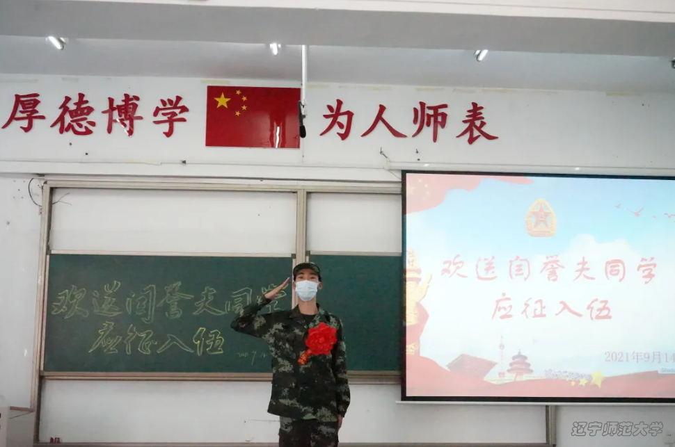 2021年9月14日16时,我院于文科二号楼402教室举办“欢送闫誉夫同学应征入伍”仪式,出席人员有马克思主义学院党委副书记傅厚春老师以及2020级全体本科生。
