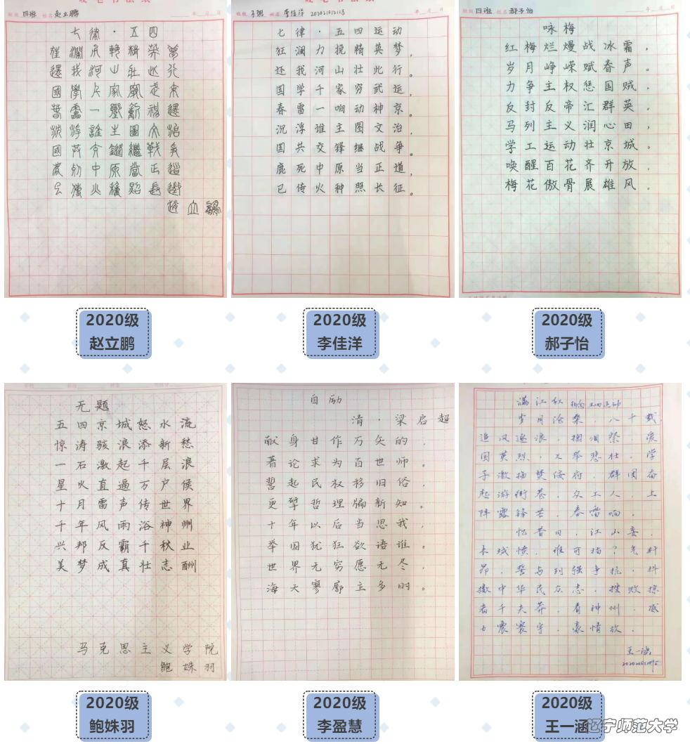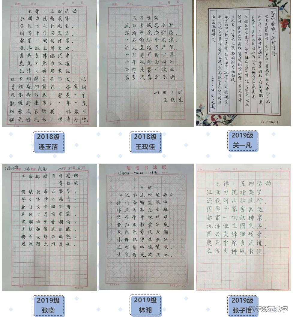 横平竖直显功力,一字多义添神秘。工整的方块字体现了师范人的素养,一撇一捺代表了青年人的态度。经过两个月的钢笔字书写活动,我院学子的书写能力得到了较大提升,现在对五月以“铭记五四运动”为主题的钢笔字优秀作品进行公开展示。