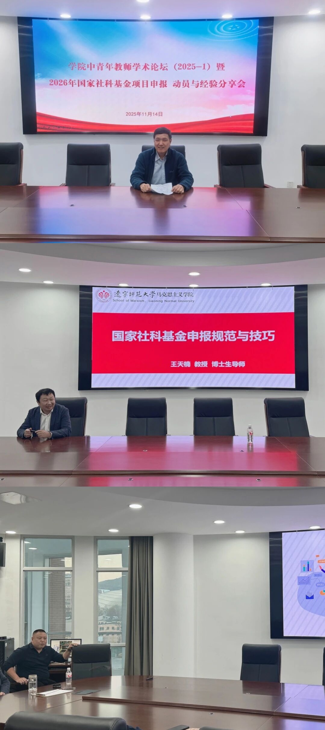 为贯彻落实《普通高校思政课教师队伍建设规划》(2025-2027),扎实推进有组织科研,提升中青年教师的科研创新能力,积极做好2026年国家社科基金项目申报工作,学院于11月14日成功举办中青年教师学术论坛(2025-1)暨2026年国家社科基金项目申报动员与经验交流会。