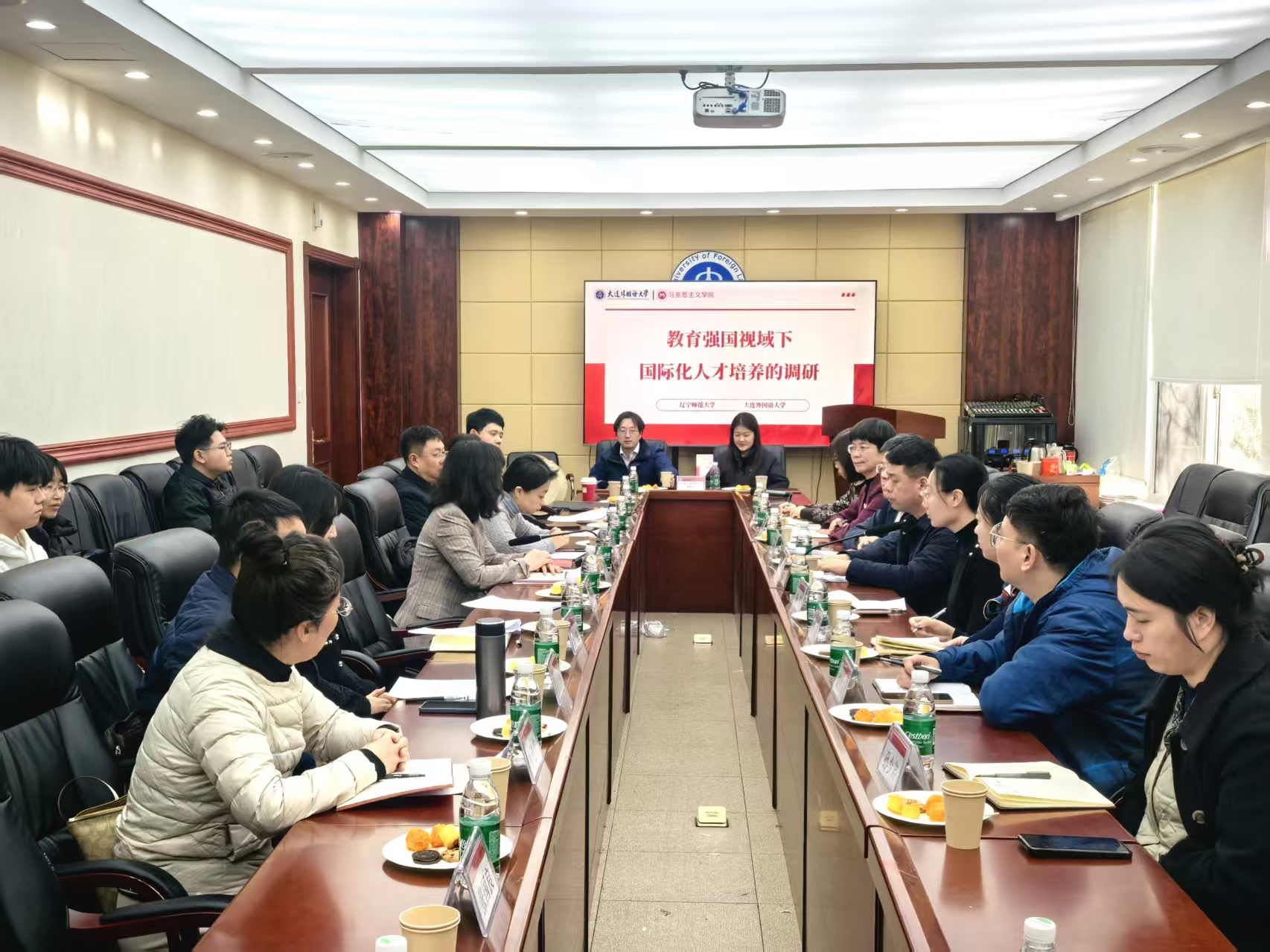 为深化马克思主义理论学科国际交流与合作实践,加强校际经验交流与资源共享,2026年1月7日上午,学院党委书记王吉东与副院长杨阳、思想政治教育系主任伊娜、毛泽东思想和中国特色社会主义理论体系概论教研室主任姜永建、中国近现代史纲要教研室主任徐绯璐以及孙少芹、杨艳丽、雷书天一行赴大连外国语大学马克思主义学院,开展“教育强国视域下国际化人才培养”主题调研活动。大连外国语大学马克思主义学院党总支书记李宁、党总支副书记李晓溪、副院长张雷、教务处副处长迟爽、国际交流与合作处外籍教师管理科科长李琛、教师代表、学生代表热情接待并参与座谈。